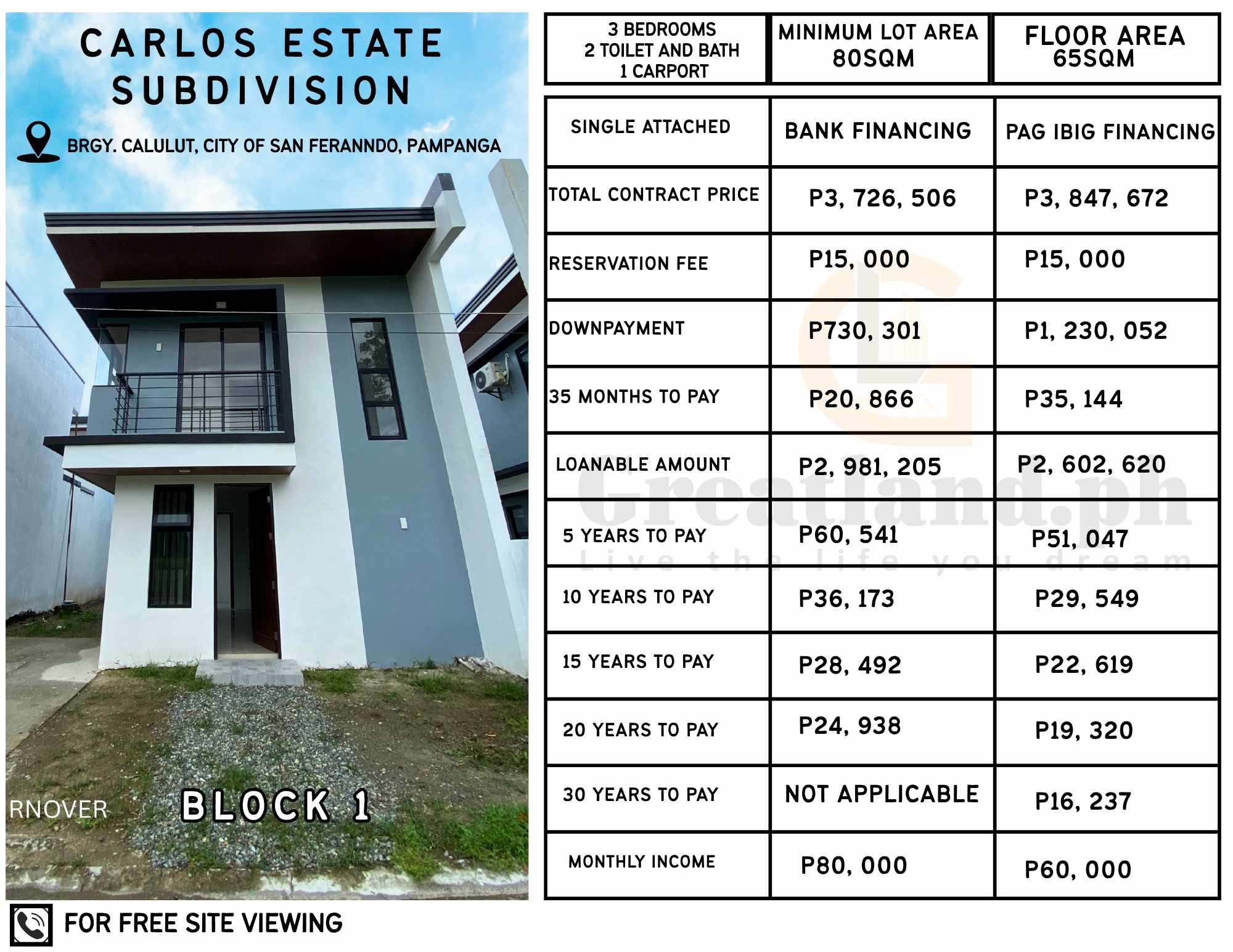 Carlos Estate Subdivision 3 bedrooms 80Sqm 1 Carport
