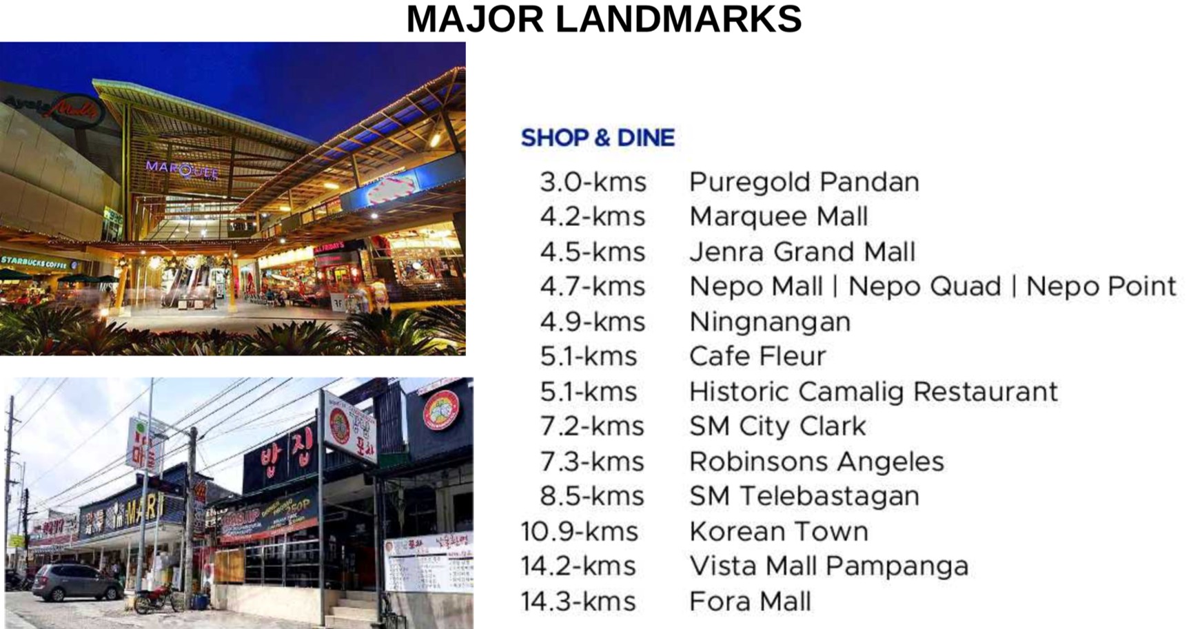 • Shopping & Dining: MarQuee Mall 4.2 km β€’ Nepo Mall 4.7 km β€’ SM Clark 7.2 km β€’ SM Telabastagan 8.5 km