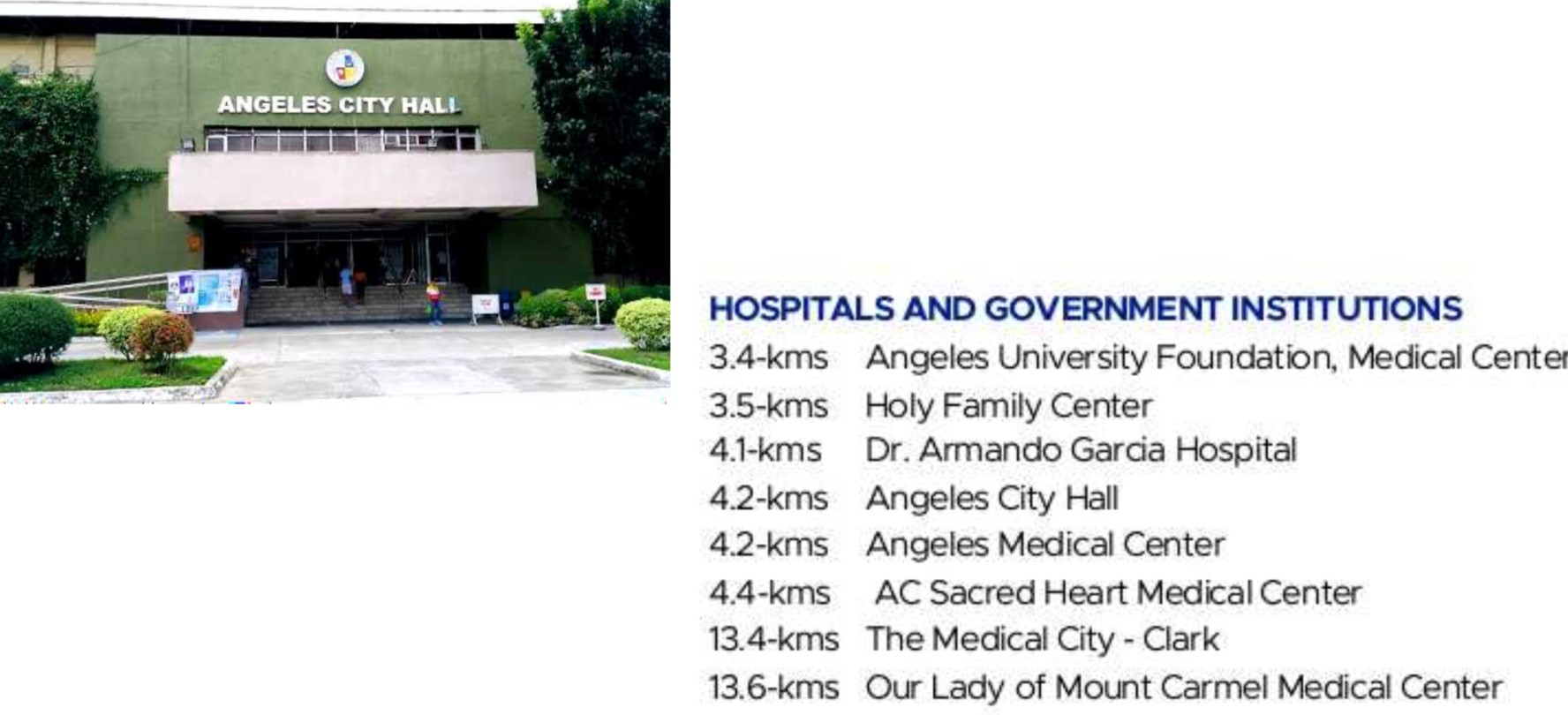 • Hospitals: Angeles University Foundation Medical Center 3.4 km β€’ Angeles Medical Center 4.2 km